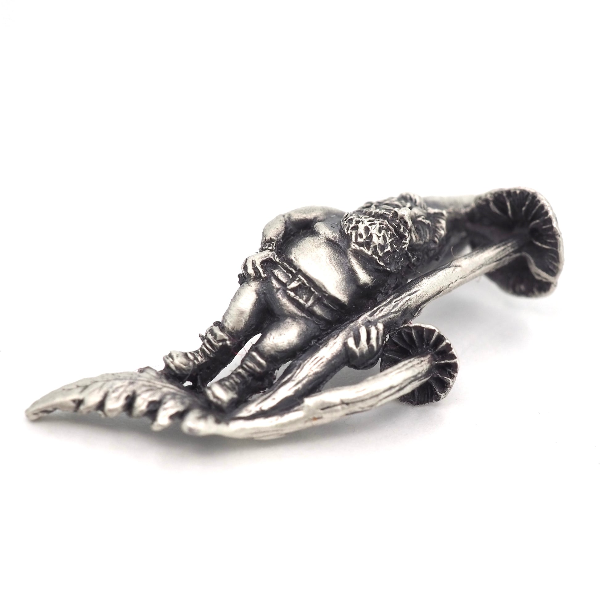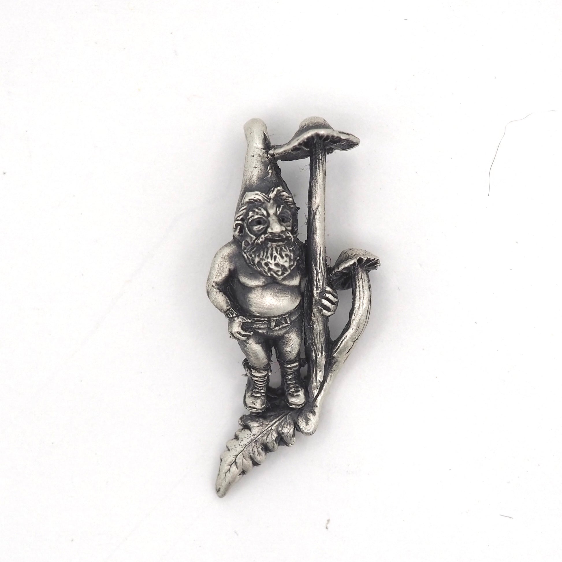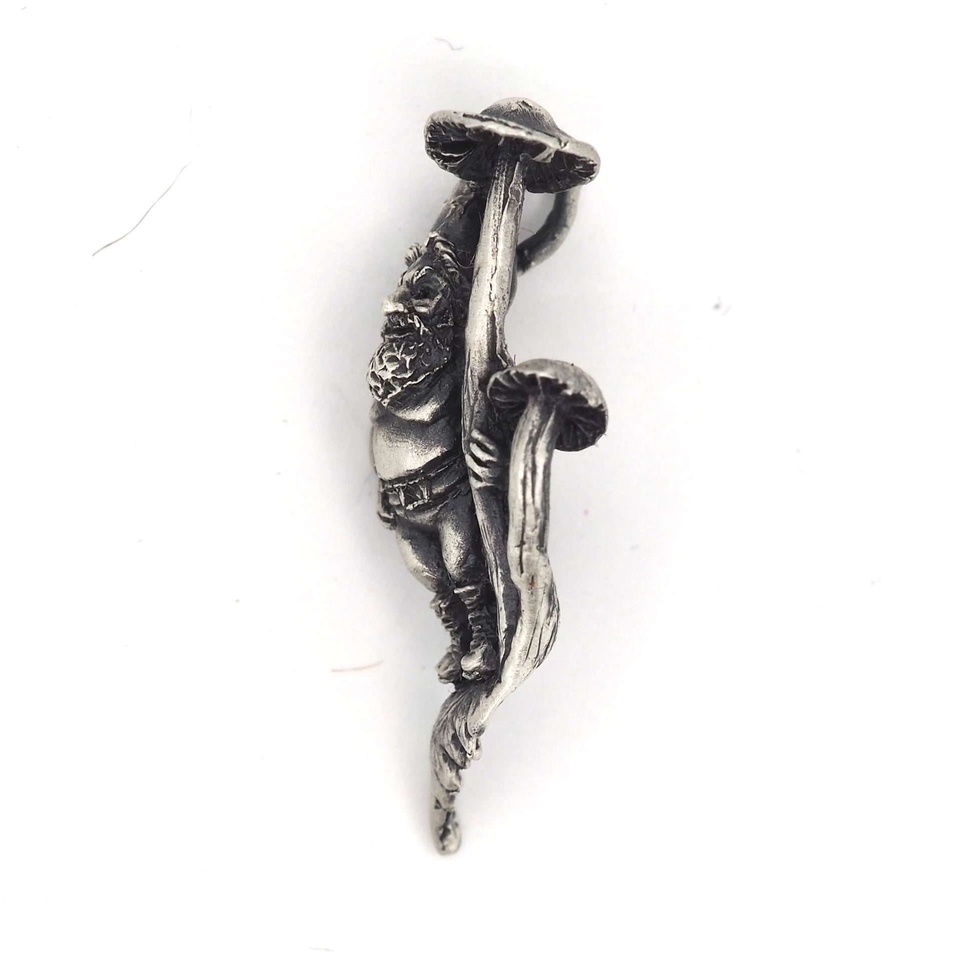 Little silver gnome with mushrooms and ferns. In a 20” sterling rolo chain