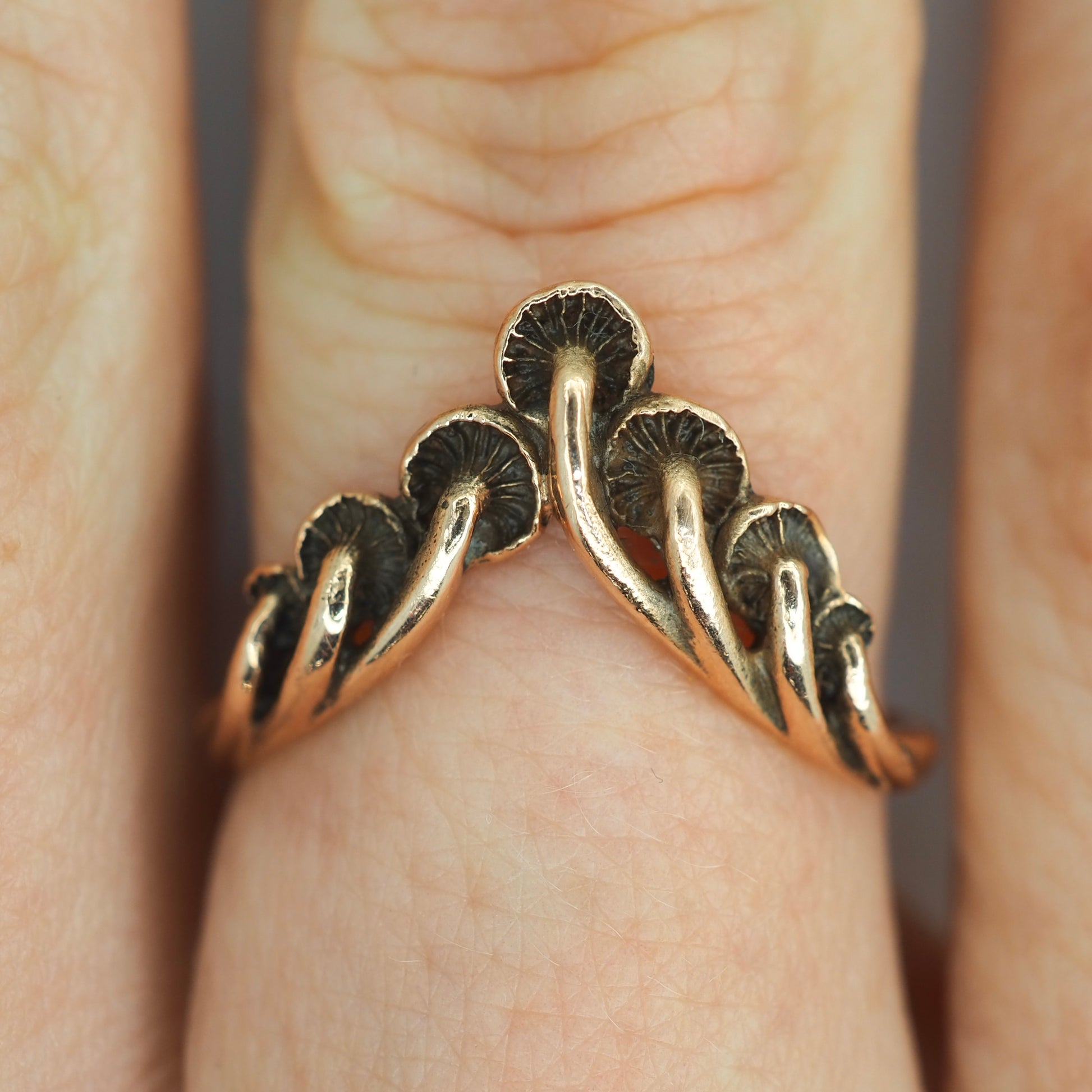 Chevron shaped ring with tiny mushrooms. Perfect for stacking with other small rings!