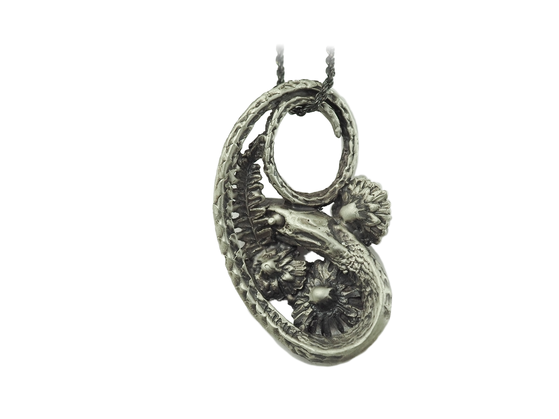 A snapshot from a sun kissed meadow. A solid sterling silver pendant made from cast fern, daisies and garter snake. Hand made and cast in my portland studio.